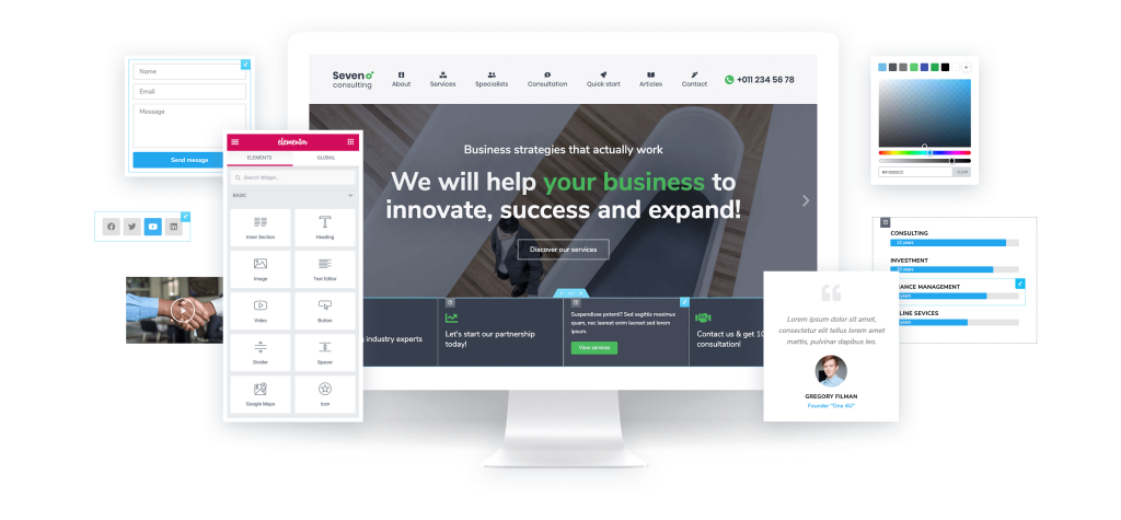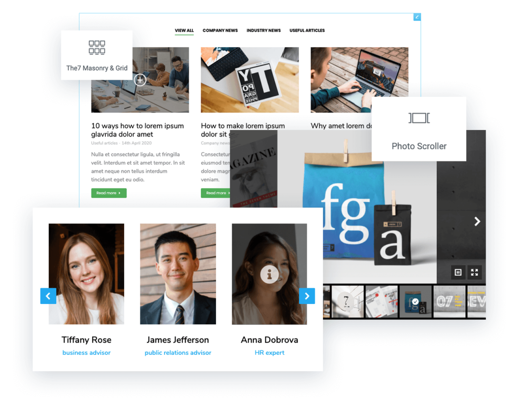 The7带有60多个预建的虚拟网站,其中包含Slider Revolution,Elementor和WPBakery Page Builder的专有模板。