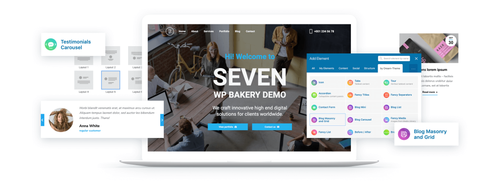 从第一天起,The7就在WPB的支持下发布了。并已成为该页面构建器在市场上最受欢迎的高级主题!
