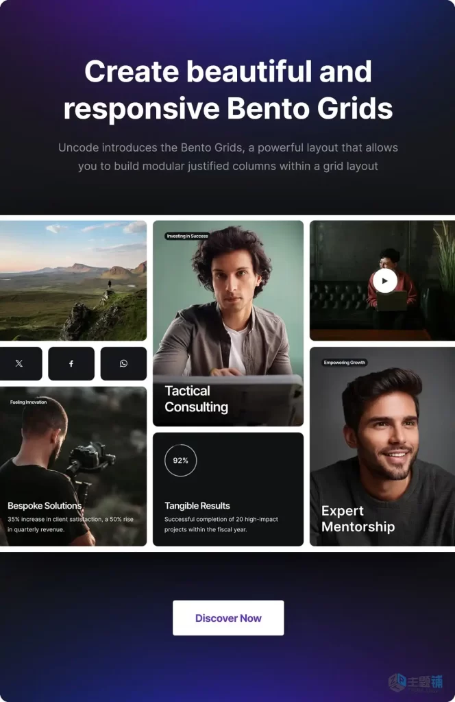 导入并修改超过 100 个专业设计的演示布局。此外,使用 Uncode Wireframes 插件,您可以导入 800 多个可组合的节模板,以创建完整的网站或独立的着陆页。